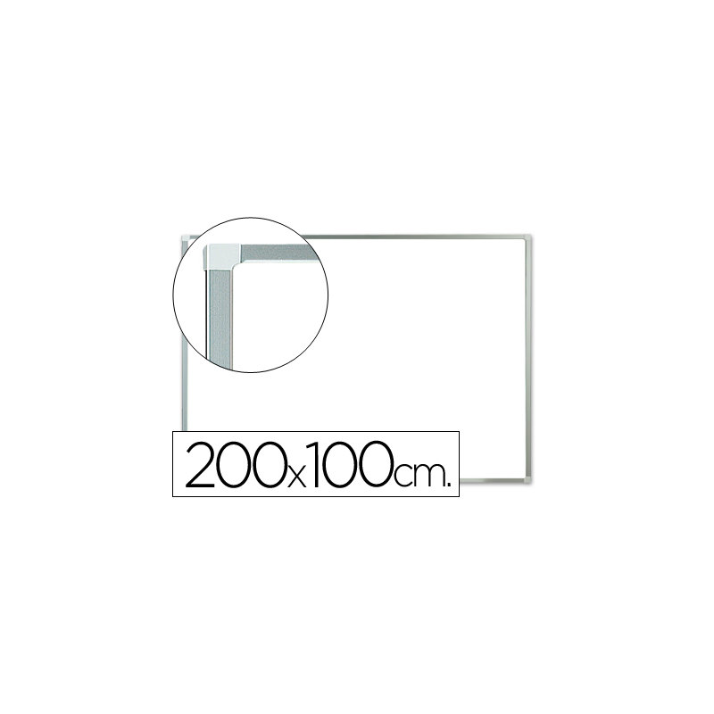 Pizarra blanca lacada magnética, con marco de aluminio. Ideal para colegios, institutos, reuniones, despachos, etc. Provista de accesorios de fijación a la pared. Utilizar únicamente rotuladores especiales para pizarra blanca.